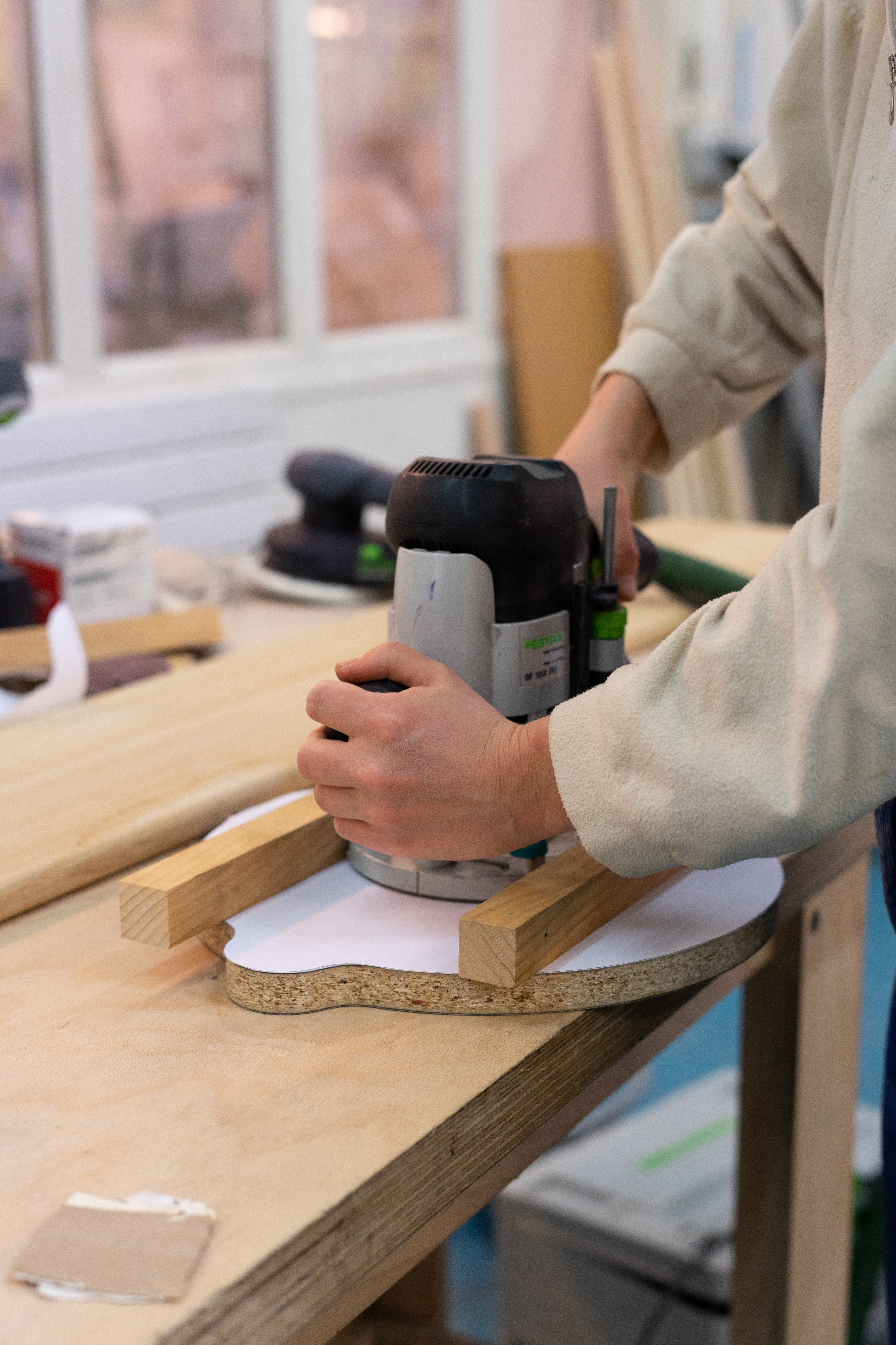 2021Dans le cadre d’une collaboration pour les Ateliers Emmaüs, j’imagine une horloge réalisé en chutes de bois industriels dans les ateliers à Villeurbanne par des artisans apprenants en réinsertions professionnels.
